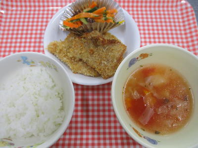 メニューはご飯・ミネストローネ・ミラノ風カツレツ・キャロットラペ。