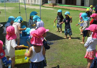 水着に着替えて水鉄砲を楽しんでいるにじチームさん。
