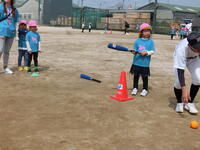 3歳児~5歳児が参加しました。コーンに乗せたボールを打ちます。(ティーボール)
